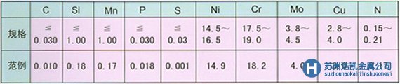含高銅、高氮、低鎳含量的特征(這些元素有良好的耐腐蝕性)