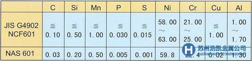 NAS 601是含有Cr、Al的鎳基耐熱、耐氧化合金,具有很高的耐高溫強度以及良好的耐氧化性,耐滲碳性和耐滲硫性。特別是在強烈的溫度變化下對于反復氧化用途具有優(yōu)秀的耐氧化皮脫落性,因此,被用于各種熱處理爐的內(nèi)壁以及柴油車的電熱塞部件等。