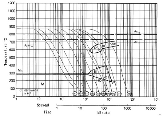 化學成分%CSiMnPSCrMo0.35 – 0.450.30 – 0.501.40 – 1.60≤ 0.0300.05-0.101.80 – 2.100.15 – 0.25