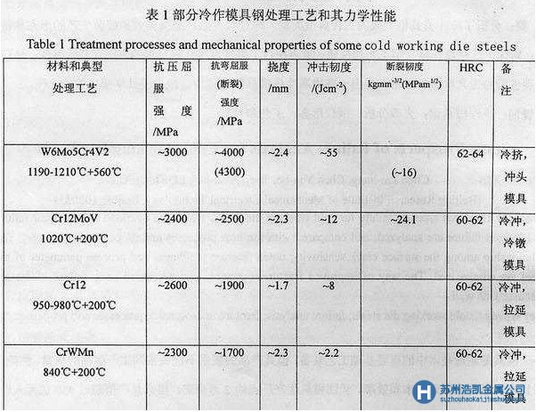 • 冷作模具鋼材特性 冷作模具鋼熱處理工藝改進