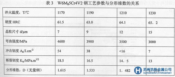 實驗測量了W6Mo5Cr4V2鋼不同工藝斷口分形維數和力學性能間關系,結果見表3。
