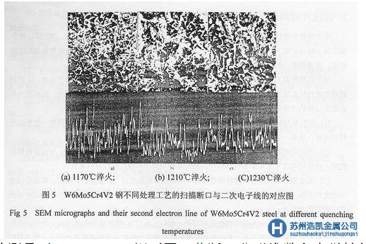 由表3可知,隨著淬火溫度增加,W6Mo5Cr4V2鋼分維數D呈下降趨勢,即D值從1170時的1.165降到1230時的1.375,同時可以看出,隨著斷裂韌度K1c和沖擊韌度Ak的增大材料的D值也增大。D值大小是表征斷口不平整程度大小的度量,D值大表明斷口表面不平度大,斷裂時消耗能大,通過斷口照片和二次電子線對應比較可以說明這種對應關系。