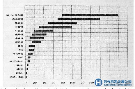 (4)有裂紋體的材料用斷裂韌性指標評價:如KIC  JIC  GIC等擴展裂紋體消耗的能量,但是脆性材料的斷裂韌性值都很低,裂紋體尖端形狀和性能的均勻性對性能測量影響很大,常見材料的斷裂韌度分布圖圖6。經過對 W6Mo5Cr4V2鋼冷擠壓沖頭模具實際承載能力分析計算可知,脆性失效材料承受工作應變能力是斷裂消耗能的上千倍,幾乎全部能量轉變為擴展動能,使沖頭迅速爆裂。
